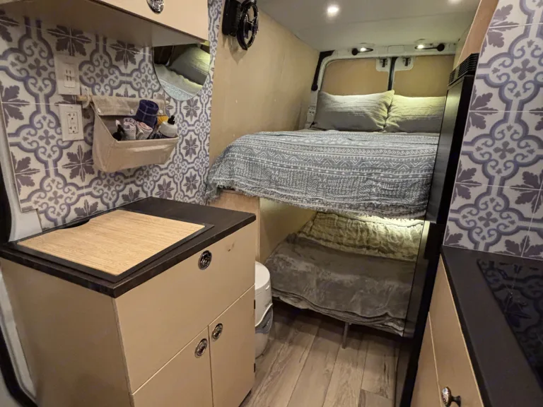 We can’t say enough what a great experience this was! This camper van had everything our family of four needed for an epic road trip through the Rockies. Rachel thought of everything! The interior and all equipment was in excellent shape and of high quality. The comfy beds and linens, and climate control (heat and fans) made for very comfortable sleeps. There was a surprising amount of clever storage space for all of our gear. The fridge and freezer were a good size for what we needed. Even though we didn’t use it, it was reassuring to have a little toilet through the night, just in case.