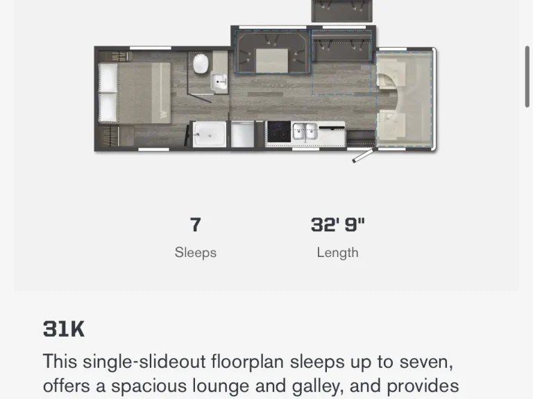 Don't miss out on this incredible opportunity to experience the freedom of the open road in a brand-new Minnie Winnie 31K. Contact us today to learn more about our rental options and start planning your next adventure!What's included4x camp chairs, camping table, linens, cookware, utensils, Keurig coffee maker with standard coffee maker, waffle maker, pillows, toilet paper, and more