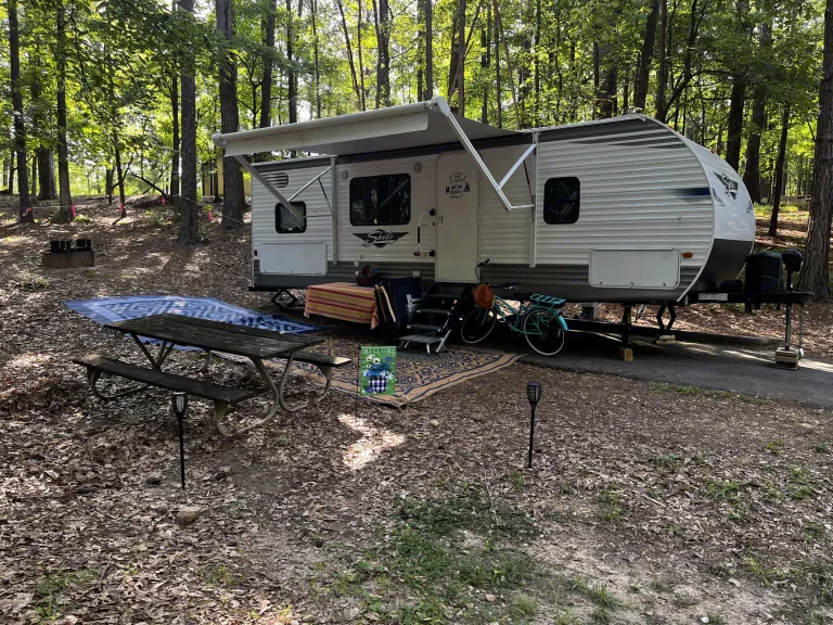 Daisy 2 is a perfect camper for families! We rent near the Auburn, Alabama area. We will set up the camper for you. All you have to do is rent your lot. We do not allow anyone to tow our camper. Set up by us is required. (You may notice delivery is not an “option” when booking. This is because we require it.) We prefer Wind Creek State Park, Chewacla State Park, or a site within a 30-40 minute drive from Auburn, Alabama.