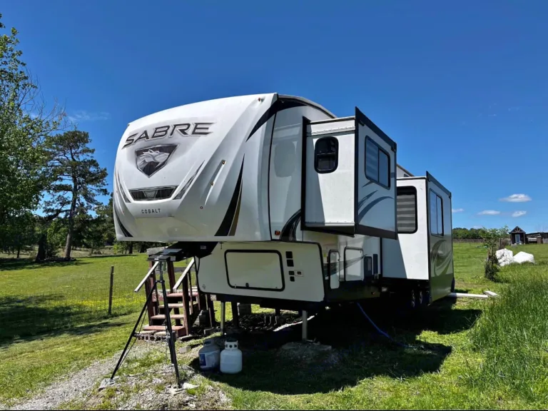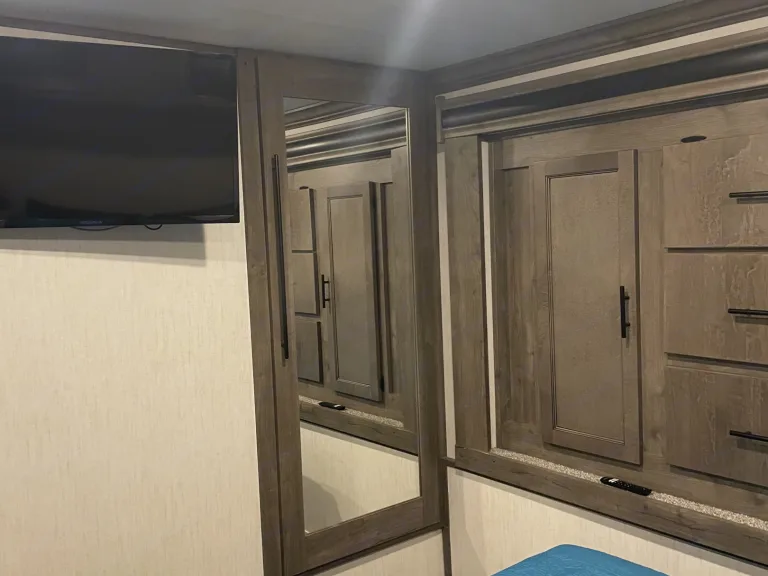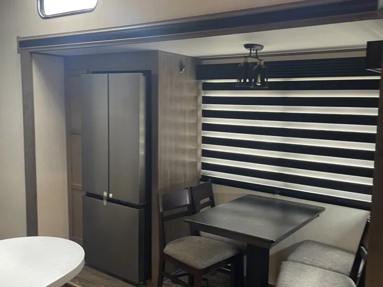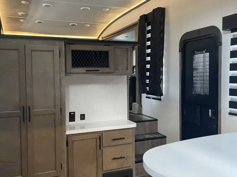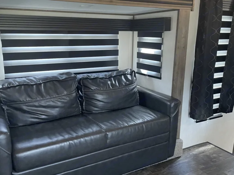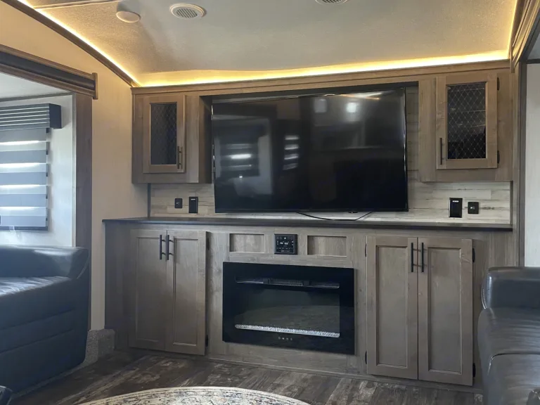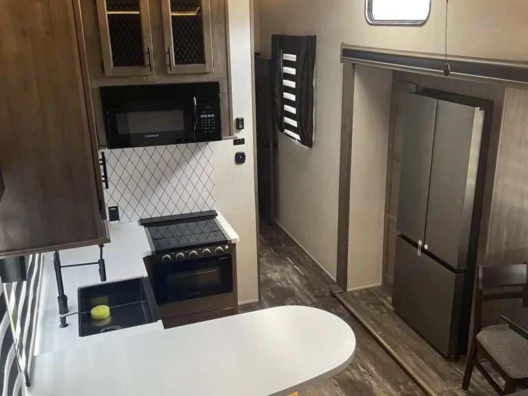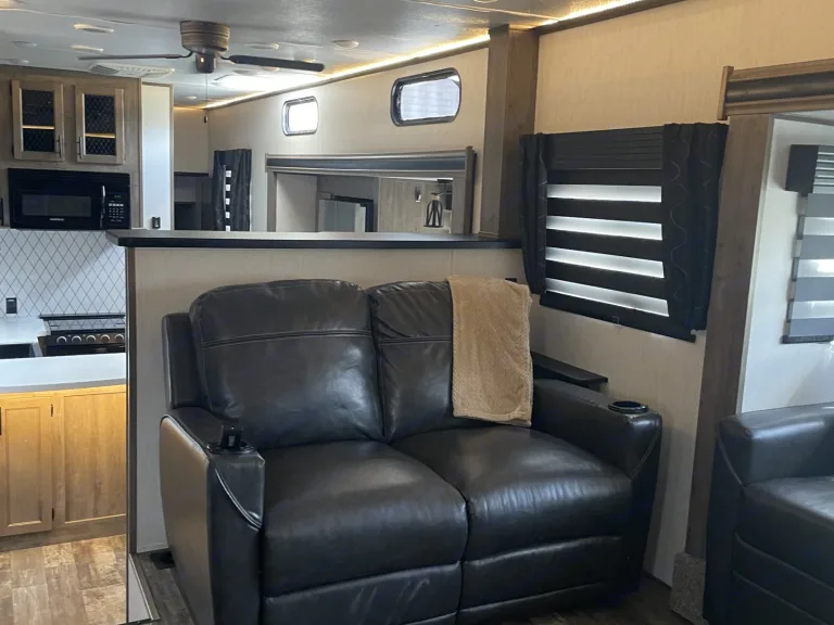 This is a large 5th wheel camper with a great living area, a nice kitchen with tons of storage, a loft for the kids with usb ports to charge all their devices, and an outdoor kitchen.