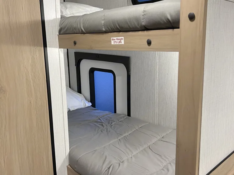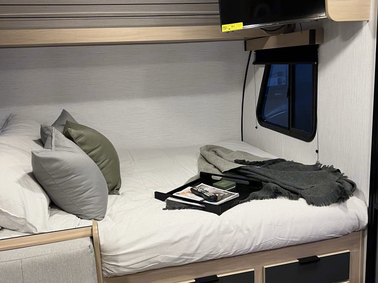 Welcome to the Nomad Experience!This brand new, 2022 Cruiser RV Hitch Travel Trailer is packed with modern amenities including: a True queen-sized bed, two bunk beds, a dinette conversion for additional sleeping space, full bathroom with spacious shower, and built-in vanity, microwave, stove-top, refrigerator, deep sink, wall-mounted TV, and bluetooth compatible radio/audio system. Stay comfortable regardless of the season with the built-in A/C, Furnace, and water-heater. The exterior features an extra-large power awning with wall-mounted speakers, LED-lighting, plug-and-play outdoor rinse station, removable wheel-well table, and built-in D-hooks for your furry family members!In addition to the cozy amenities; roof-mounted solar panels, 47-gallon fresh water tank (perfect for extended trips), rugged tires, kayak rack (for two kayaks), additional road clearance and Tons of storage allow for endless adventure!Book with us today, and discover why The Nomad Experience is better.What's included-Adventure buddy, Nomad Max (and his travel journal)!