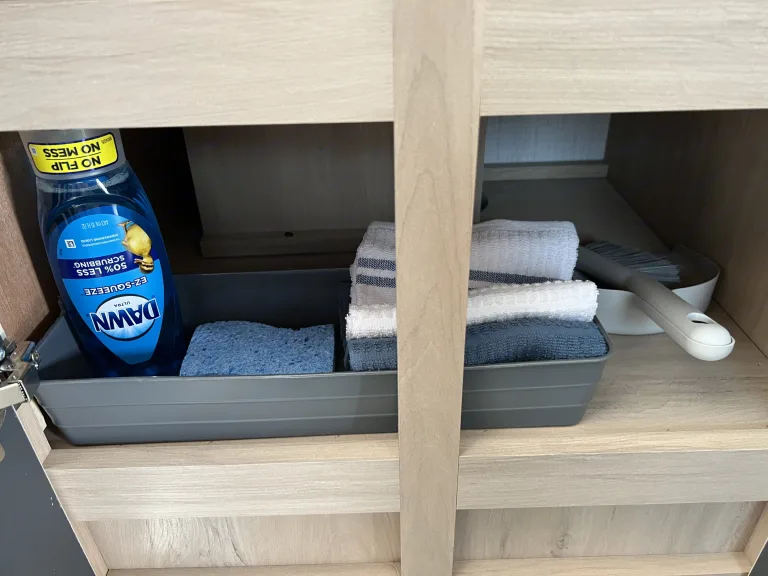 -Dish Towels, Sponge, Dish Soap, and Drying Rack