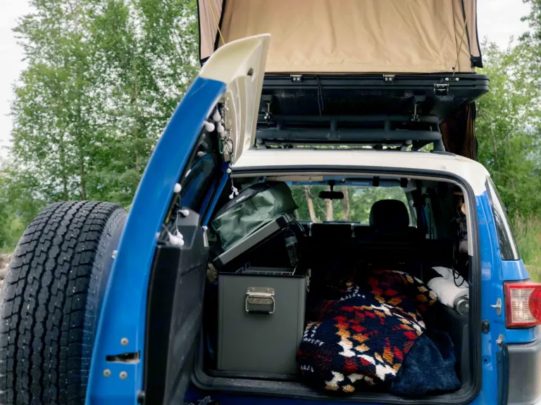 This FJ Cruiser is a comfy, rugged way to see Alaska at your own pace. It’s a manual (fun if you like stick) and fully outfitted for off-grid travel: rooftop tent for two, EcoFlow battery (AC power), and an Iceco electric cooler—no ice runs.I also run Outland Expeditions. If you want a route with real local advice, I’ll help you skip the overpriced stuff. I’m a filmmaker who’s spent the last 6 years shooting for top Alaska tourism brands—happy to point you to the true gems.Unique extra: wild sauna experience (add-on; see last photos).What's included• 2 Sleeping bags