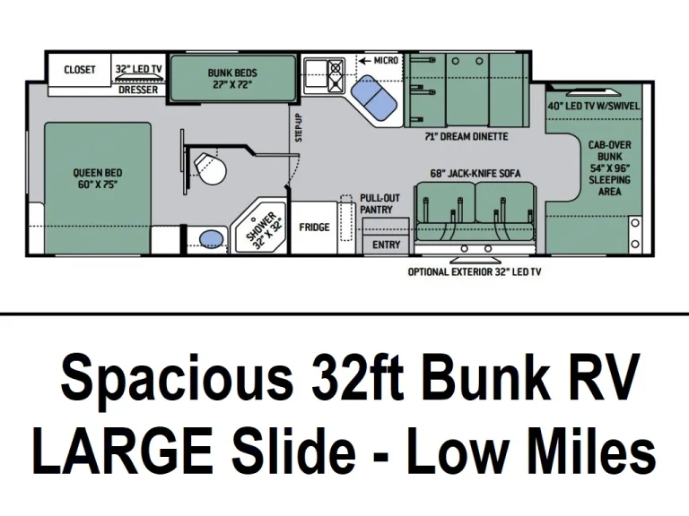 • Make sure to fill the gas and propane tanks and dump the sewage. Failure to do so will result in a $200 charge.