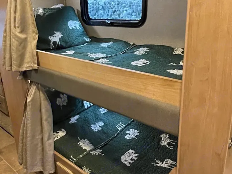 -Fresh linens and blankets come for the queen bed and bunk beds. Other bedding will be provided upon request for the fold down couch, dinette, and over the cab.