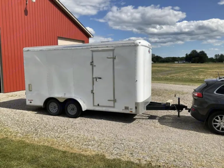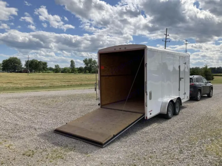 2018 Cargomate enclosed trailer 7'x16' with extra height celling (8'6") Rear ramp door with side entrance.