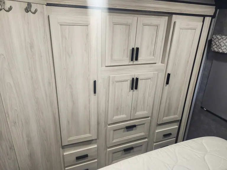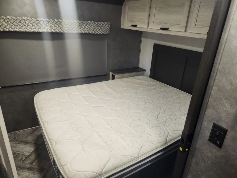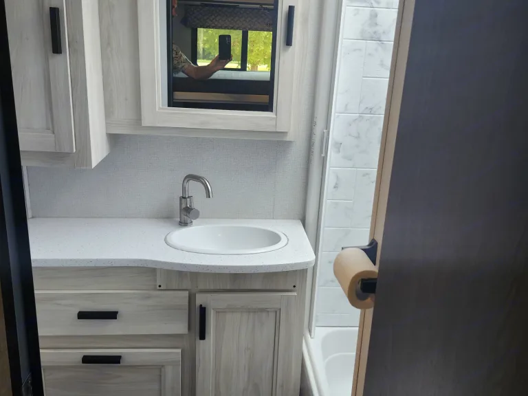 No need to rely on campground restrooms. This RV features a full bathroom with a shower, toilet, and sink – clean and convenient for families on the move.