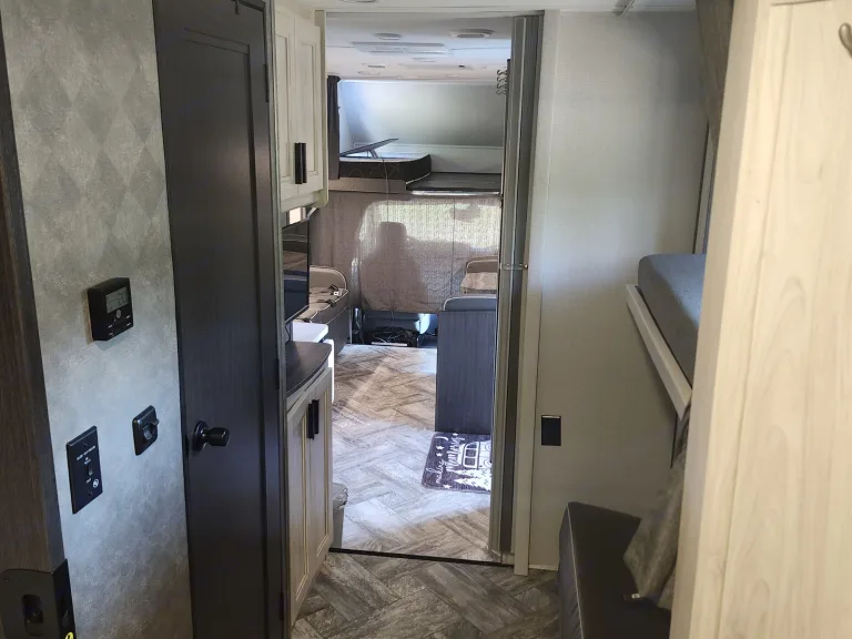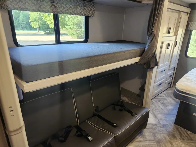Enjoy a smart, kid-friendly floor plan with:Private queen bedroom in the rearOverhead cab bunk (always a favorite with kids!)Convertible dinette and sofa bedA dedicated bunk bed area for extra sleeping space or storageFull Kitchen for Meals on the Go