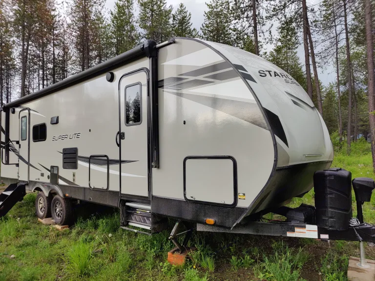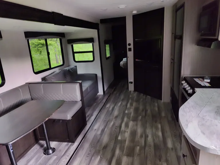Equipped with solar panels for off-grid camping. Propane/Electric fridge, heat, and stove. AC, outlets, and outside fridge only work if camper is plugged in. USB outlets will work off of battery. This camper is for delivery only.What's includedHose, leveling blocks, drill for stabilizer jacks, wheel stabilizers, black water tubing. Fresh Linens and Kitchen equipment provided.RecommendationsThis camper is for delivery only.Other things to noteThis camper is for delivery only.