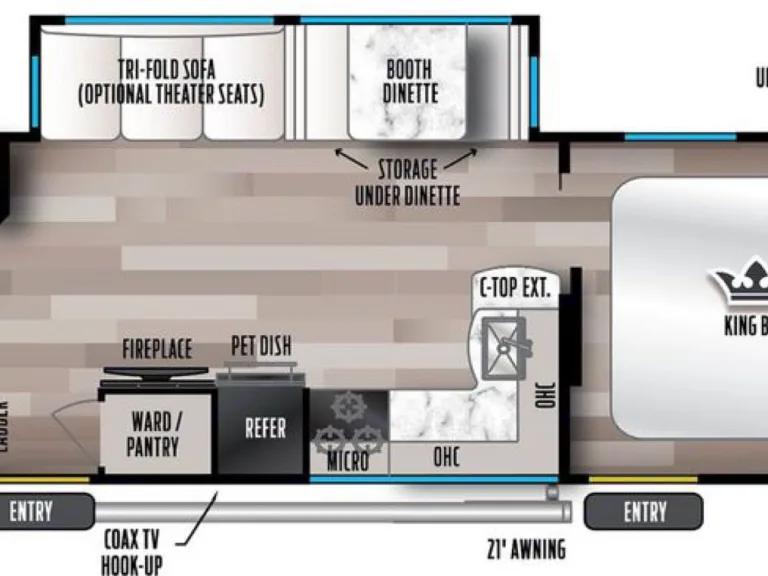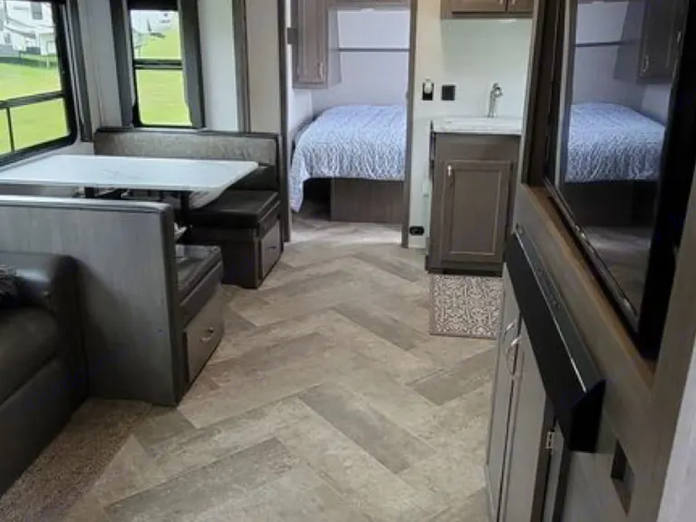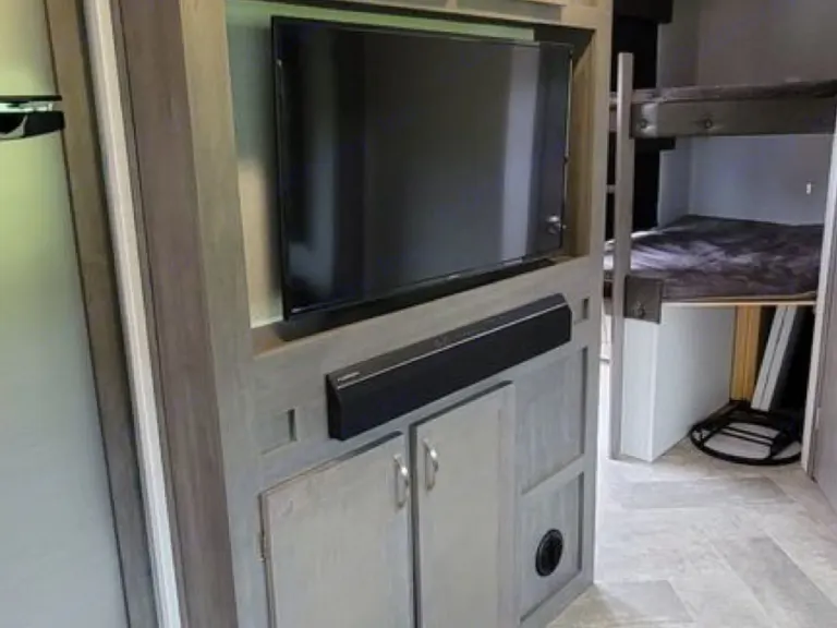 Looking for a way to travel with your family and pets without hefty hotel fees? Look no further! This travel trailer has it all! There are 2 oversized bunks in the back, the sofa pulls out into a bed and the master has a king size bed with plenty of storage. The bathroom is quite roomy for a camper with plenty of counter space.What's includedFully stocked with dishes, cups, mugs, utensils, pot/pans