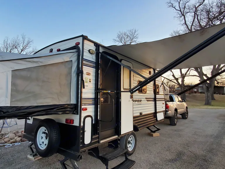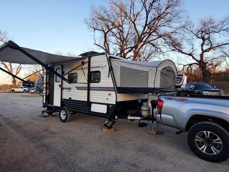 Perfect family camper for those who don't want to pull at your vehicle max capacity. This lightweight camper has everything you need. Two pull out bedrooms on either side gives you tons of rooms. The canvas pull out gives you the tent experience to feel the breeze / see the stars but you still have AC / shower / bathroom ect. I think its the perfect trailer!
