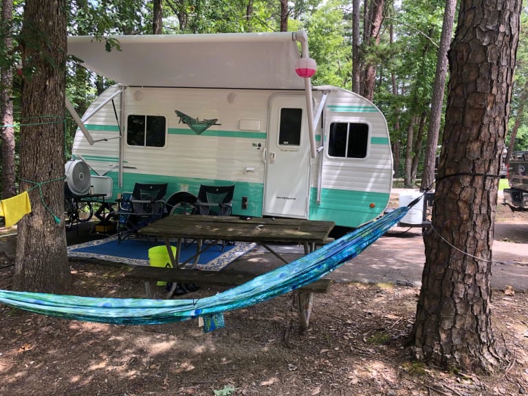Of course we add a little bit too. Here at AustinRV4Rent we fully stock our travel trailers with lines, utensils, pots/pans, plates, cups, bowls, cutting board, wine bottle opener, coffee maker (including filters), a toaster and a lot more!
