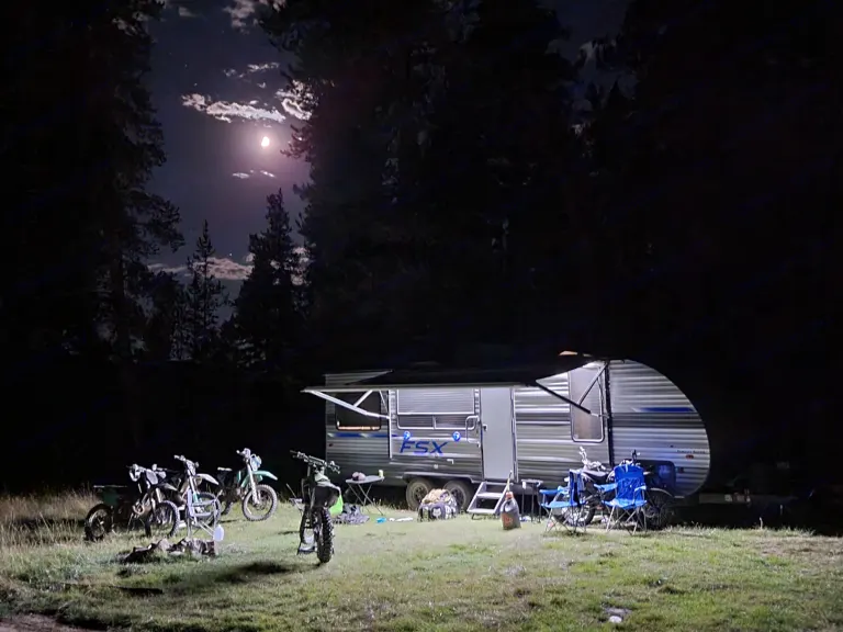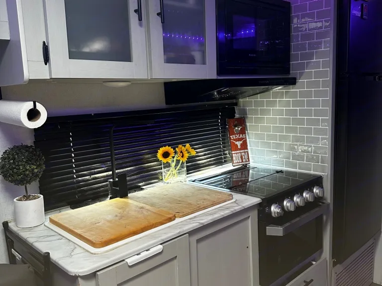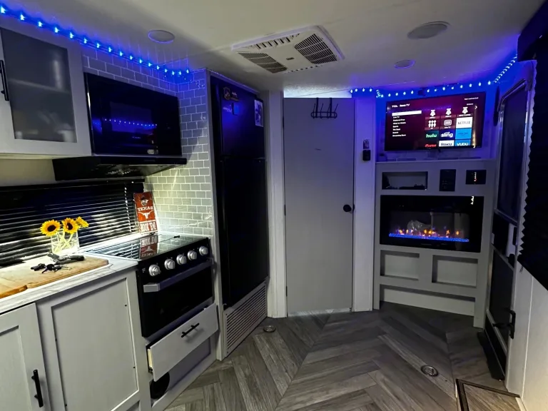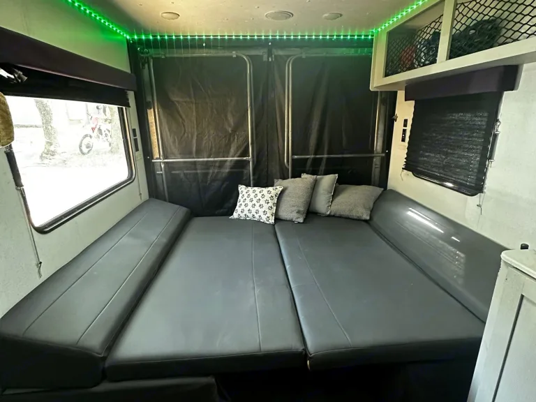 2021 Forest River Toy Hauler equipped with Full Kitchen, Living area and separate Bedroom and bathroom. Extendable Patio with Fence and Bug screen.The separate bedroom features a comfortable Queen Bed with Memory Foam. wall mounted 32" Smart TV and plenty of Storage!Walkthrough Full Bathroom with Shower. Upgraded sinks, Faucets, and showerhead!The living room features an open floor plan with Dining area that doubles as King Size bed. 32" Smart Tv and Electric Fireplace makes this cozy room to hang out in. Set the Vibe with Customizable LED lights. Full Kitchen with Stovetop, Oven, and Microwave.Oversize A/C keeps cool in the Hot summer Months!Bluetooth stereo with indoor and outdoor Speakers. Large retractable awning w/ an outdoor shower!What's includedBasic cookware and utensils are provided. Extra linens (Bedding, Sheets and Towels),Generator is included if Staying off Grid. Please purchase additional gasoline per day if needed (expect 3-5 gallons of use per 24 hours period) Generator is provided with one tank of gas(2.5g) and will Last about 18 hours with all Devices in use.RV is Delivered with Full fresh Water Tanks and Empty sewage/ grey Tanks. Full Propane Tanks. ( weeks of use)Delivery and pickup within 100 miles only.