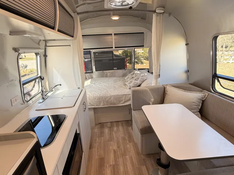 Meet Bambino, our 2024 Airstream Bambi 22FB. Easy to tow, easy to use, and perfect for a simple trip where you want comfort without a massive trailer. It sleeps 4, but the best fit is 2 adults plus 2 smaller children.Best features
