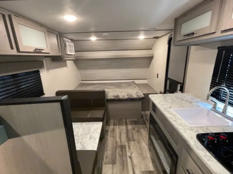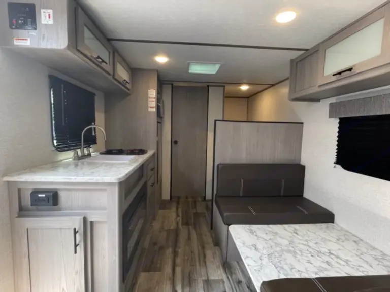 Lantern is a 17ft bumper pull camper. Ready for a family or friends adventure.With sleeping space for five, this bunkhouse model is ideal for a couple or a family with kids. It is equipped with a 10000 BTUs A/C and 20000 BTUs heater to have great nights and fresh days.Two burner stove top and kitchen sink, refrigerator, freezer, microwave and wet bath are some of its features.What’s includedLantern comes with: