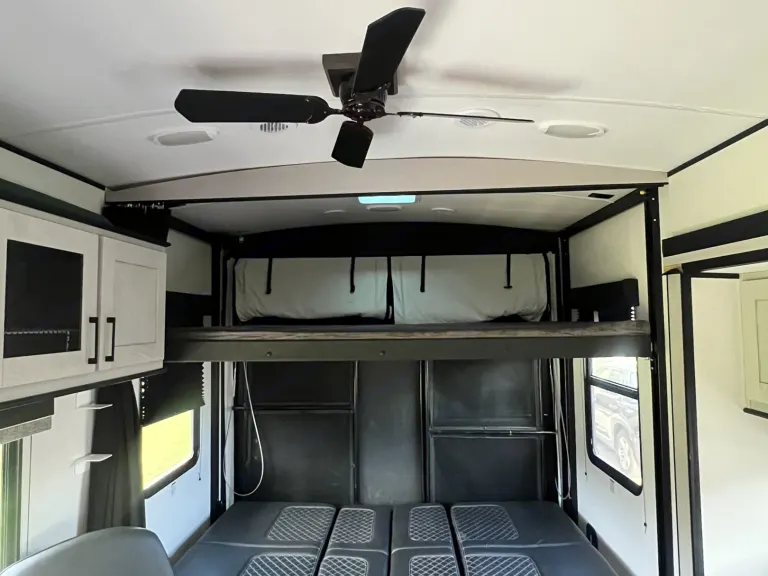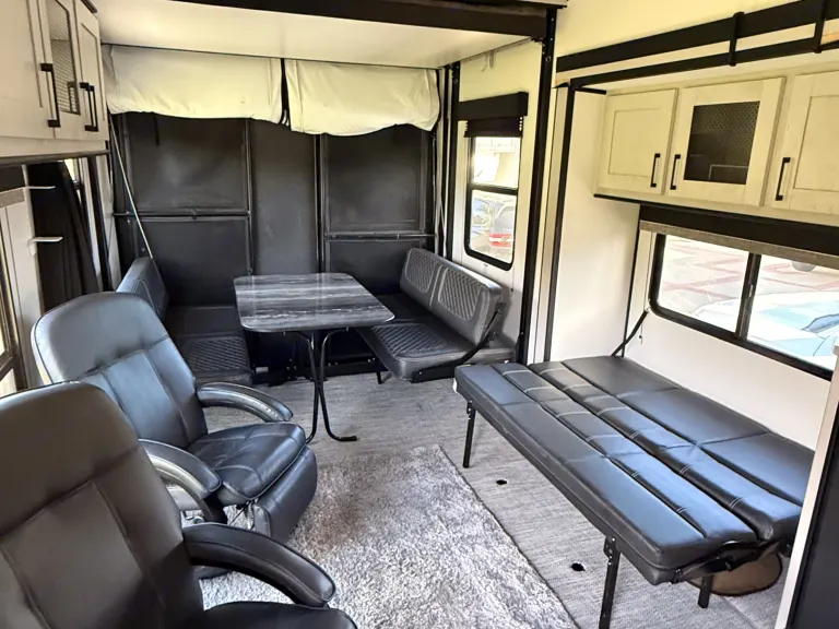 Get ready to explore in comfort and style! This spacious toy hauler is perfect for families, groups, or anyone looking to bring their gear and relax after a day of adventure.Sleeps up to 8 with: