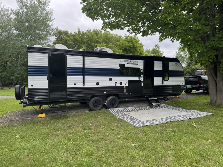 • Convenience on the Go: Lightweight and easy to tow with a hitch weight of just 725 lbs.Create Lasting MemoriesImagine waking up to panoramic views from the large windows, enjoying breakfast with loved ones at the dinette, and ending the day with s’mores by the campfire. Whether you’re heading to the beach, mountains, or a scenic campground, the Grey Wolf 26DBH transforms any destination into a luxurious getaway.**Additional things to note**What to bring:Personal blankets, pillow, sheets if desired. Also, towels as well. I also offer a “Linen + package” that includes full sheets and comforters for additional beds and 6 XL beach towels so you can pack light! Sheets for Master are included complimentary.The trailer has reuse plates, silverware, cups, cooking utensils, pots, pans, toaster, bowls, measuring cups, & specific toilet paper for toilet (regular TP can’t be used in the system).Late Fees:Late Renter Pickup/Meetup: If a renter is late for a Rental Pickup, a late fee of $15/hour will be assessed until the time of pickup unless previously discussed and approved before the pickup date/time.Pickup/Dropoff:Times vary from weekend to weekday pickup/drop-offs. Weekday pickup/deliveries would be in the late afternoon/evening times. Renter pickup can also be early morning if availability allows. Please message to discuss details of your trip.Dirty RV Fee:We understand that RVs get dirty out on the road! Returning a RV with a “normal” amount of exterior dirt is acceptable and will not result in any additional charges. However, if an RV is returned covered with mud/dirt, soot, trash, food, wine stains, interior dirt/grime etc, and you do not wash & clean the RV prior to returning it, the owner may require that the renter be charged an additional cleaning fee. These fees vary from owner to owner & severity of mess.Book now and start making memories that will last a lifetime!What's includedCamping chairs (upon request), fishing gear (Upon request), dishes, silverware, & Master bedroom set top sheets included complimentary.RecommendationsWith Vermont’s beautiful foliage and Many camping locations across the state and its neighbor New Hampshire, the adventures are endless! With Tank Heaters, Fireplace and 200W solar in this unit, cold weather won’t stop you either! Camper sleeps 9 Comfortably. Camper offers full hookup capability or “boon-docking” with Fresh water tank and 200W Solar . Upgraded Boon-docking battery with full switch shutoff.