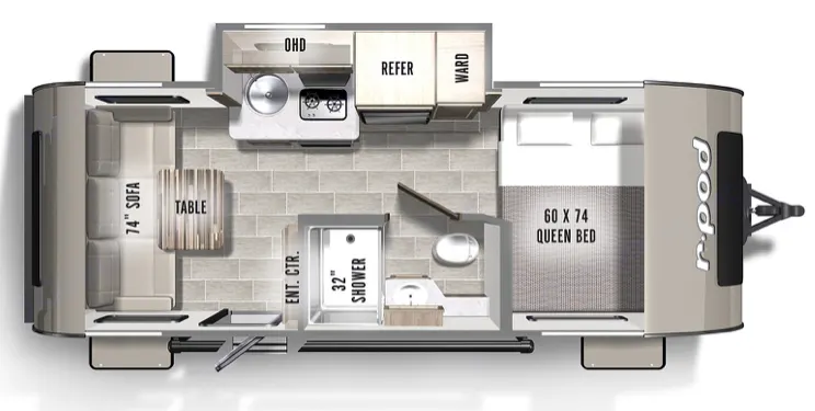 The “Ribbit” R-Pod served its purpose for our family camping experience. The process of picking up and returning the trailer to the storage location was easy. Only negative was the bars for the dinette table were not to be found. Will use this company again!