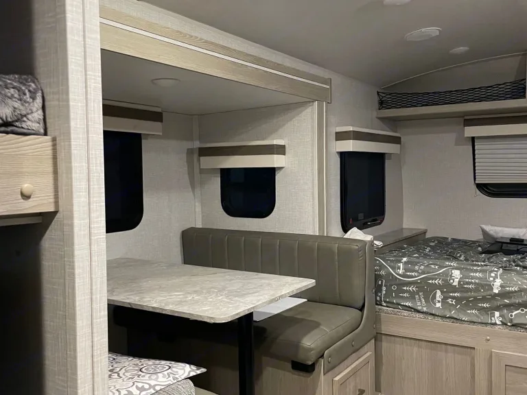 No silent killer here; carbon monoxide alarm!Sleeps 4 comfortably, double twin-sized bunks, slide out diner converts to additional sleeping area, if needed!Full Bathroom, with sink and shower. (Shower Height — 5’11” & I fit comfortably)What's includedOutdoor: