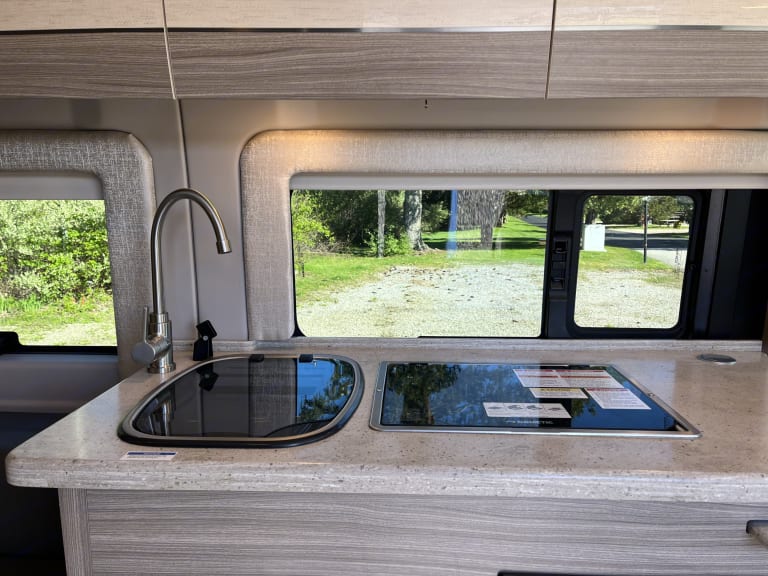 Van will come cleaned with a full tank of gas and fresh water tank and empty black and gray tanks. RecommendationsGuests typically bring their own sheets, pillows and towels. Kitchen supplies will be provided.