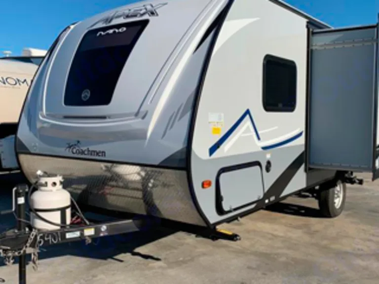 This Coachmen Apex Nano Ultra Lite travel trailer features a set of bunks, a single slide out, and all that you need to enjoy camping with family and friends!**Note: Completing and entering information including Credit Card info does not mean you have completed a booking, this is only a Request process. Once the request has been reviewed by us we will reach out with a follow up email, please check your inbox and junk mail for prompt response.Step inside model 193BHS and find a queen size bed turned sideways at the front of the unit. You will also like that it features a large overhead storage cabinet along the front wall.Straight ahead through the entry door find a dinette slide out which is the perfect spot for meals and also for just sitting and hanging out.To the left of the door enjoy the kitchen area where you can prepare light meals and snacks for your family. There is a double sink, two burner cook-top with microwave oven beneath, and refrigerator.In the rear right corner find a set of 30" x 74" bunks that the kids will enjoy. The opposite corner offers a tub/shower, wardrobe, toilet, and vanity with sink, plus medicine cabinet overhead.The front pass-through compartment provides ample space for all of your outdoor camping gear, and more!Note: This trailer HAS an AC unit, 30amp power site is needed to operate the AC!What's includedKitchen Supplies:Camper is stocked with 5 Plate Settings and Silverware