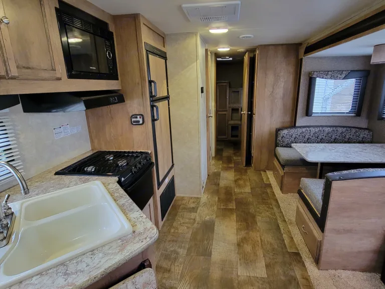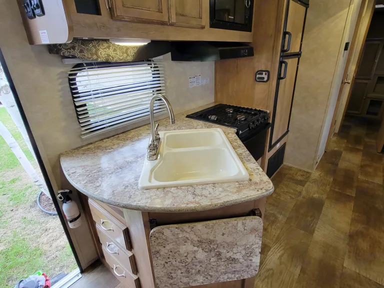 This travel trailer is ready for some adventure. Sleeps 9 comfortably, has a tv with a DVD player. We have owned this beautiful family friendly trailer for 5 years, and just don't have the time to enjoy it anymore. There is an outdoor kitchen which is a great feature. Its in immaculate condition.What's includedThis trailer comes fully disinfected after each use.*Fresh Bedding