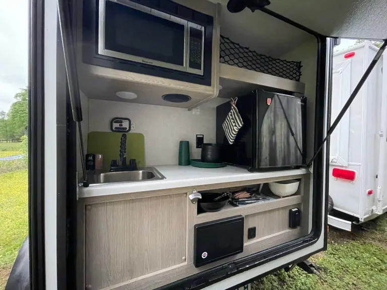 “Cedar” is our 2021 Forest River Rockwood Geo Pro micro camper.Cedar has heat/AC within arms reach, doors with windows on each side, full hookups (30amp) cable ready, microwave, mini fridge, kitchen sink, 7 foot awning off the side.*Upon Request Only*