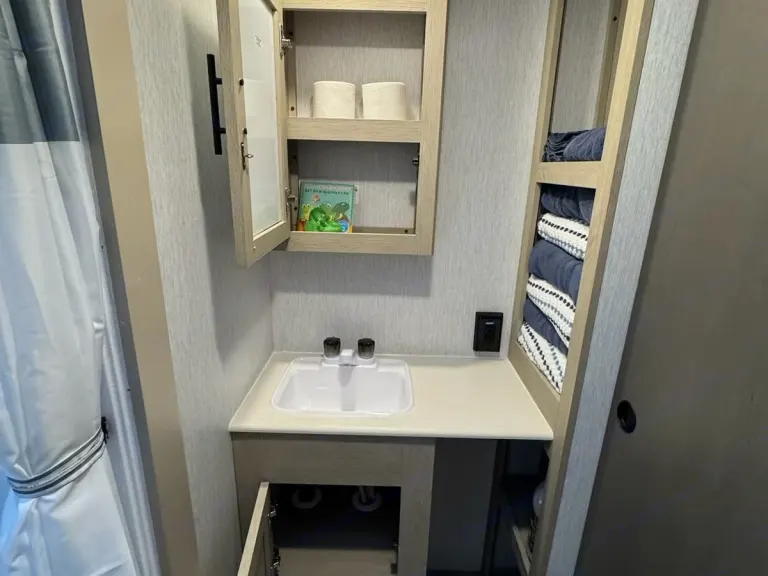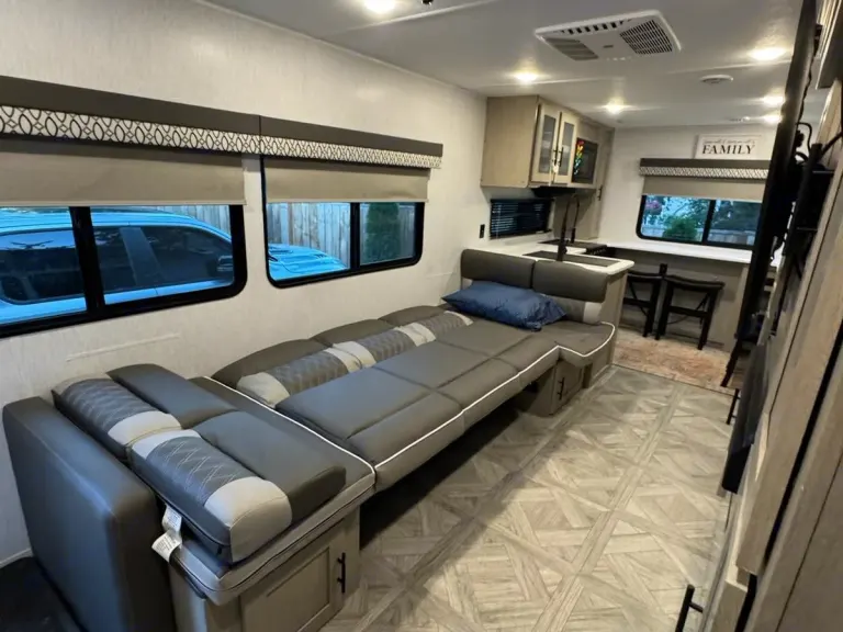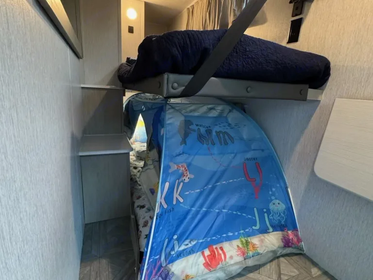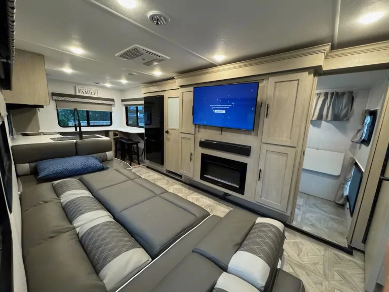 This adventure rig is designed for a family. With the kitchen surrounded by windows, the bunk room a perfect hideout for the kid who likes some space, and an entertainment center for the guy who doesn’t want to miss a game. The trailer has child proofing and all the necessities for a long weekend away.What's included• Towels
