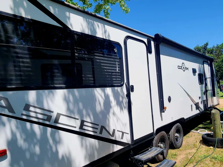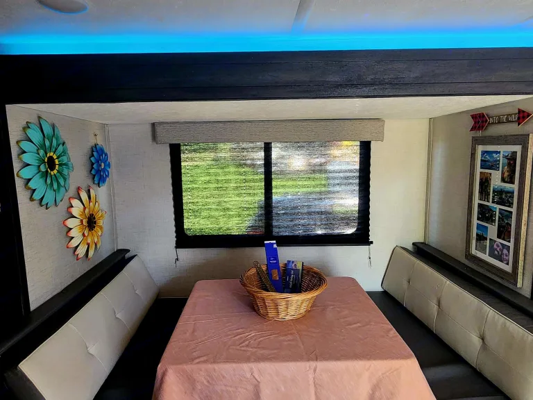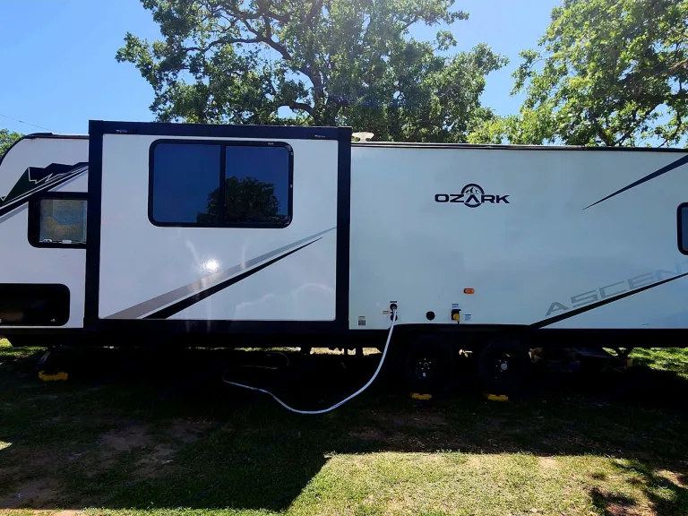 Cozy modern bohemian travel trailer great for 4 people but can accommodate up to 7!! There's a handmade bunkbed in the back that sleeps 2-3 and a queen size in the main area.Our unit boasts 3 air conditioners to tackle this Texas heat, a fold down porch in the rear for the milder months, and an awning to provide shade for your outdoor relaxation anytime.A sizeable fridge and freezer allows you to stock up on whatever you need without dragging ice chests around. There's a 3 burner gas stove inside along with a sizeable sink, microwave and water heater. An outdoor kitchen setup (gas stove, table and air fryer) is available for an extra fee.All basic needs (dishes, utensils, trash bags, toilet paper, shampoo/conditioner/soap, towels) are provided.Extras: Interior LED lighting and aromatherapy sets a beautiful ambiance in the evenings.
