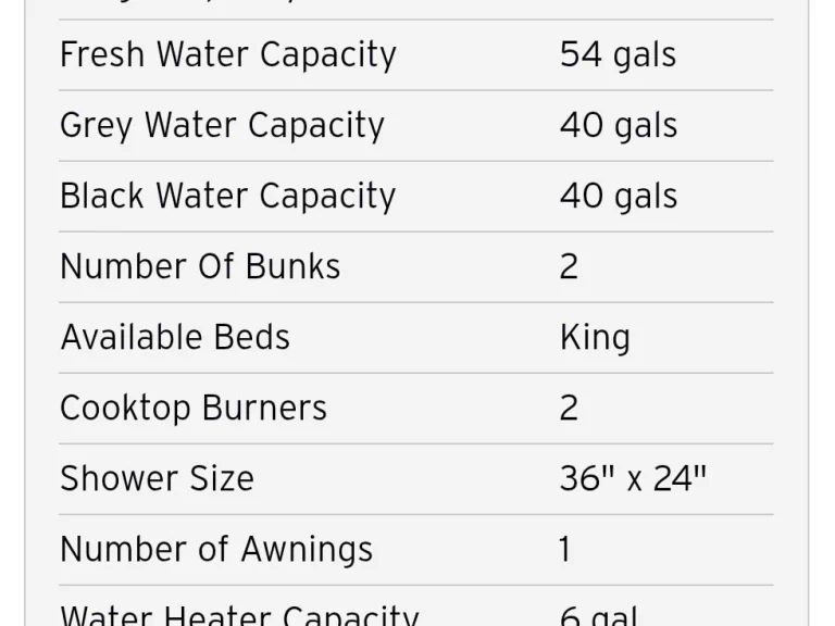 - Gray water: 40 gal