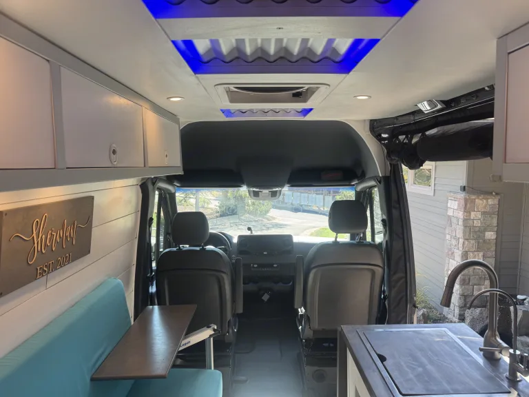 Sherman is a 2019 Freightliner Sprinter van that is ready for all types of outdoor adventure. This self-contained camper van is perfect for a couples vacation getaway. This sprinter has all the safety and creature comforts you would want in a van including a backup camera, blind spot warning, lane departure warning, and braking assist. Sherman is 4 wheel drive, pet friendly, and sleeps 2 people comfortably in its queen bed. It is equipped with a lagun swivel table and eating area, a large fridge, stove with an oven, outdoor hot shower and a dry flush toilet. This off grid van also has a solor charged 460 amp hour battery bank, 2000 watt inverter, 30 gallon fresh water tank and a 7 gallon grey water tank. It has a large gear slide to store all manners of outdoor gear including bikes and backpacking equipment. Sherman has a Wiiboost cell signal booster to improve your cell service signal in remote areas. There is a diesel heater to keep you warm in the winter, and two MaxxAir fans to help cool you off in the summer. The Thule Hideaway awning provides shade and rain protection for the elements. There is a bug screen for the main sliding door as well.What's includedVan Amenities