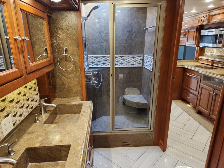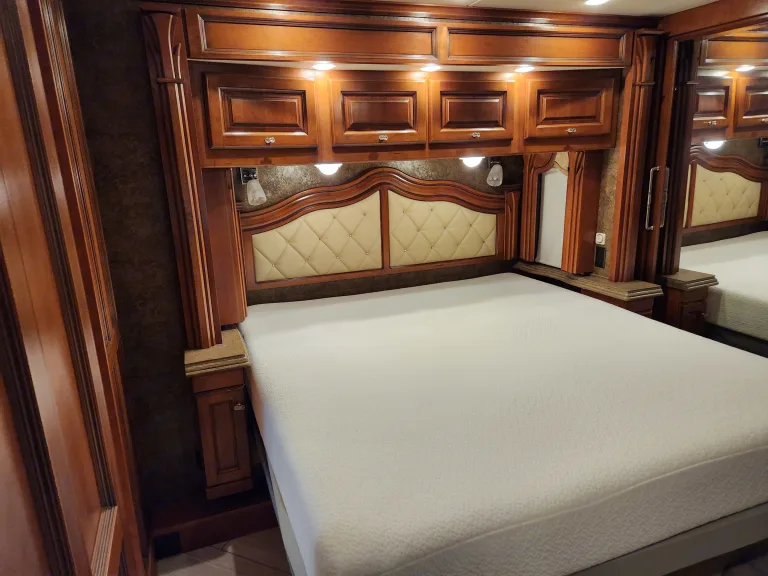 Clean 3 TV dish satellite outdoor TV tile floors fireplace double bathroom sinks Agua hot never run out of hot water. Cozy feel at home RV.What's includedFresh linens chairs disposable plates cups silverware. Outdoor fire pit.