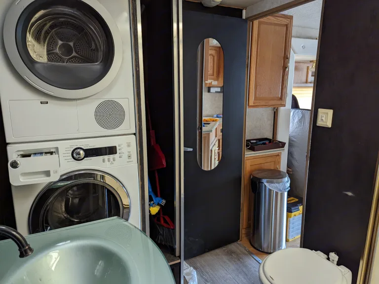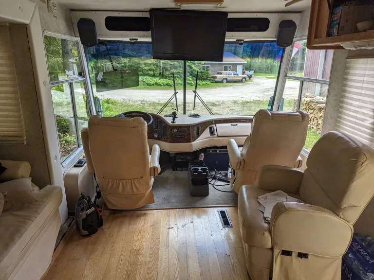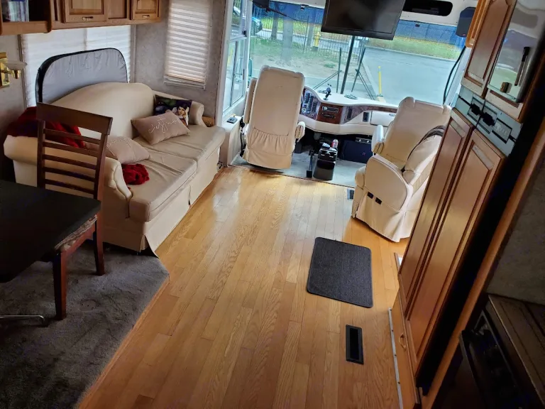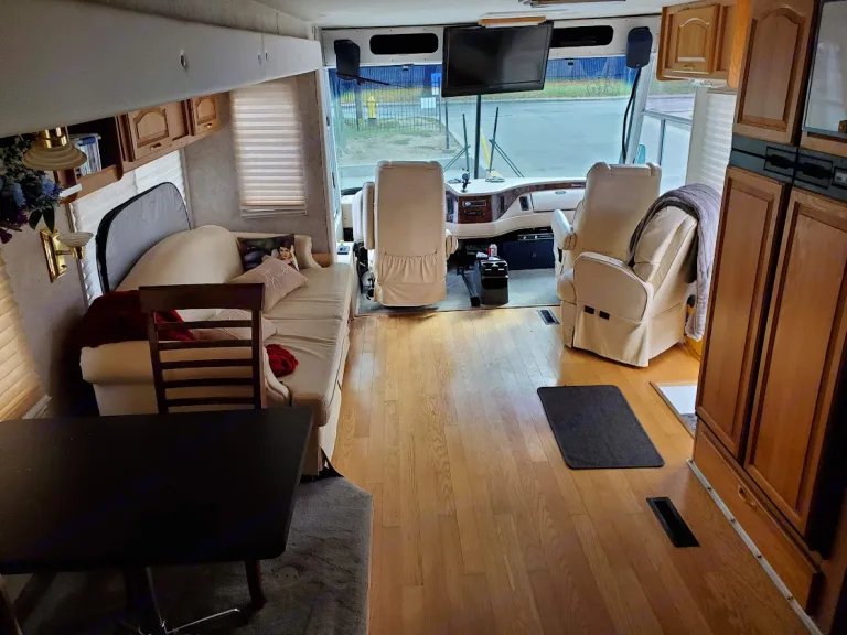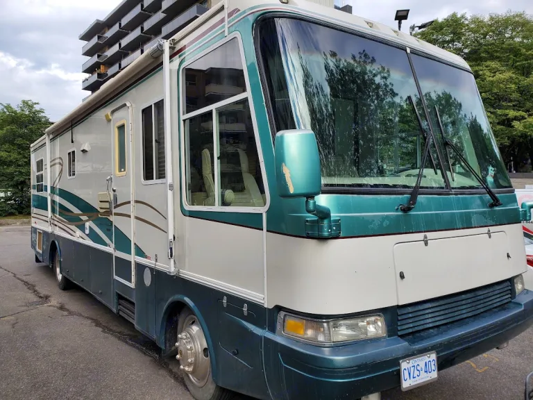 "Z' air brake endorsement required to drive vehicle in Ontario. Air over hydraulic brakes,. 38' Diesel pusher CAT 275 with Allison Transmission, under 85,000 miles. Recently certified. RV from Oakland, California. Propane Onan generator, brand new custom muffler and exhaust. Propane/electric double-wide fridge/freezer, propane 3 burner stove and oven. Double kitchen sink. Full apartment sized washer/dryer. 1 big slideout. Inverter. 50 amp service. New sound and subwoofer install. Apartment sized shower. Glass bathroom sink. Porcelain toilet. Comfortable ride, spacious, comfortable stay.
