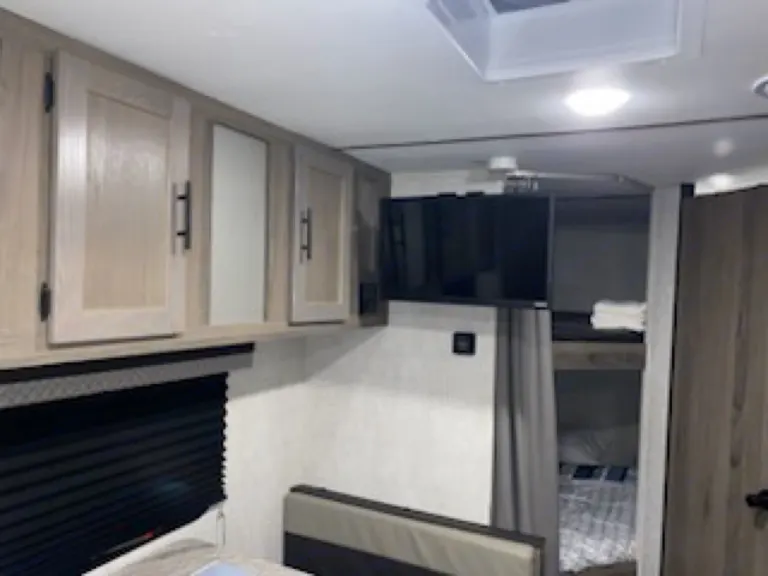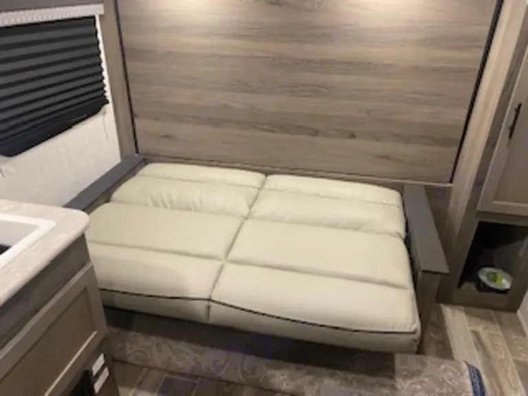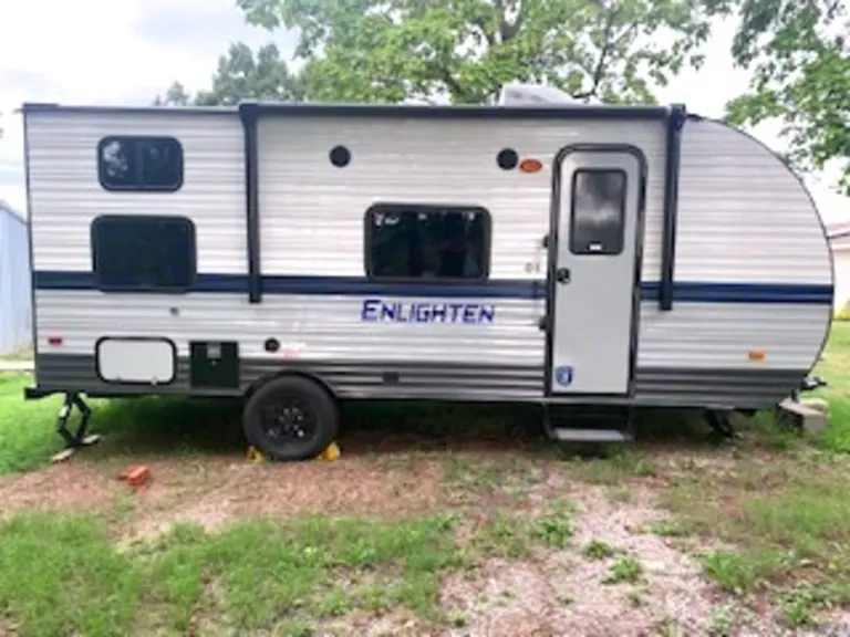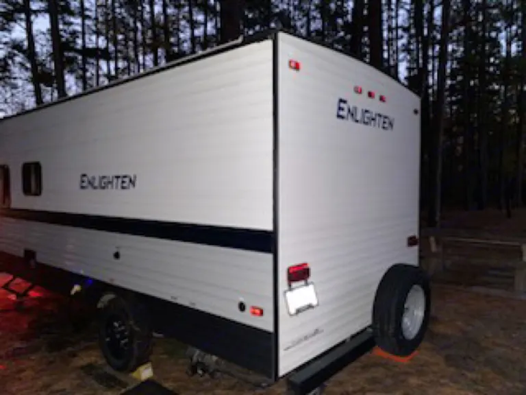 Brighten Enlighten is a gorgeous lite travel trailer. We are a Travel ball/ Busy Family of 5 that fell in love with our trailer after the first time taking it out! It can be towed by most vehicles. It can sleep up to 6 comfortably. There is a murphy bed that that converts to a queen size, two full size bunk beds, and the dinette converts to a bed that can sleep 1or 2 children or smaller adults.