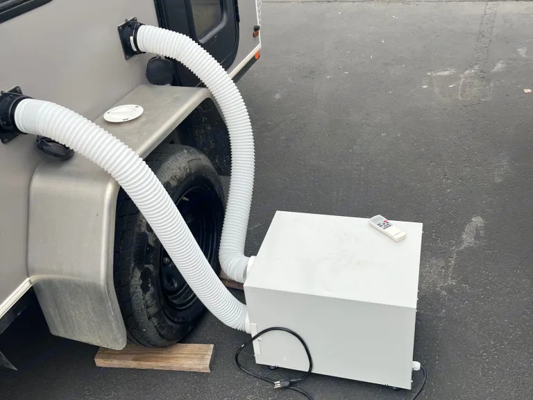 When arriving at camp ground must set up wheel chocks, stabilizer jacks and put hitch lock on.