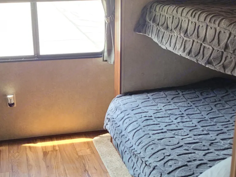 Roomy, family friendly camper with 3 smart TVs! Has a private Queen bedroom in front and private back bunk room. 3 slide outs total and an outdoor kitchen.