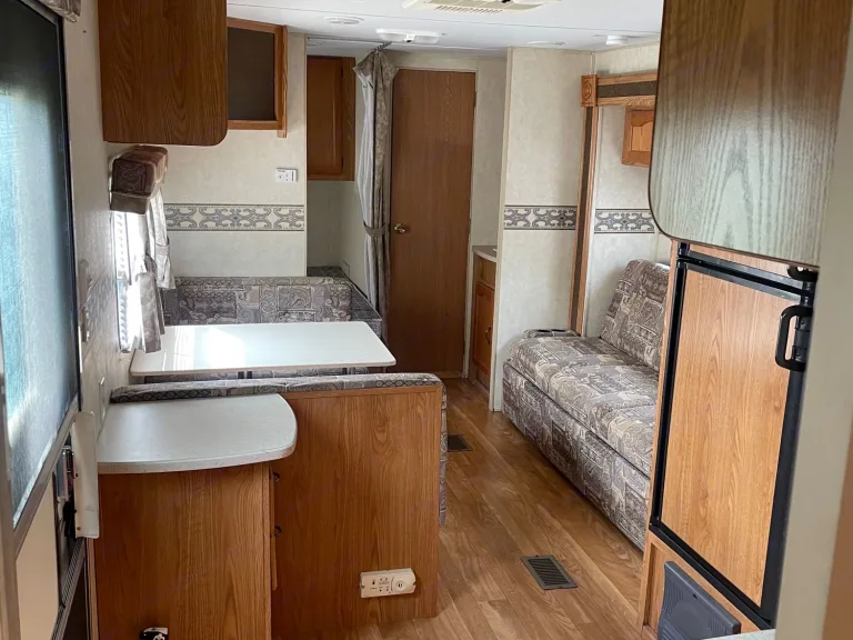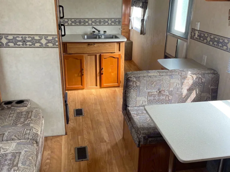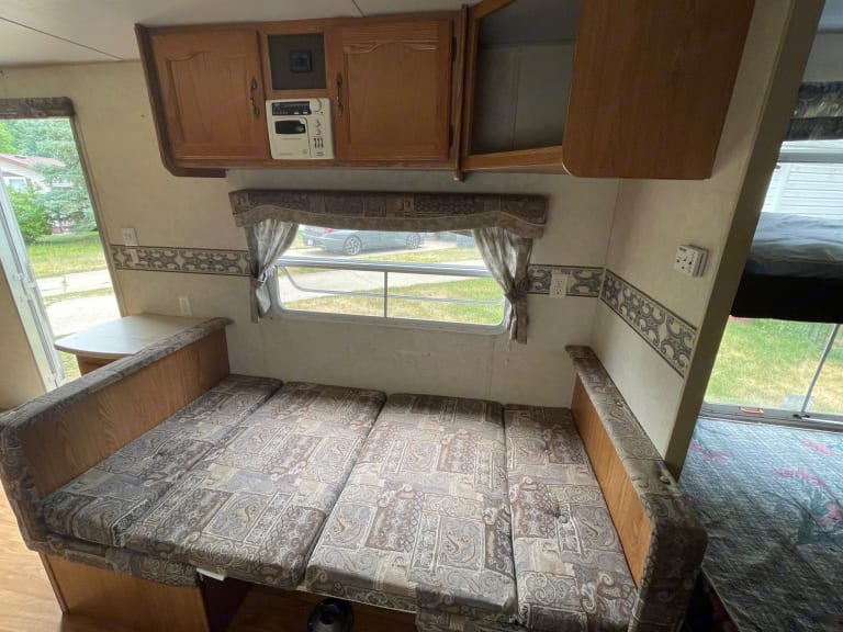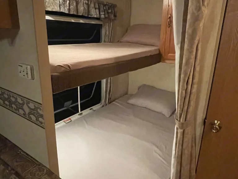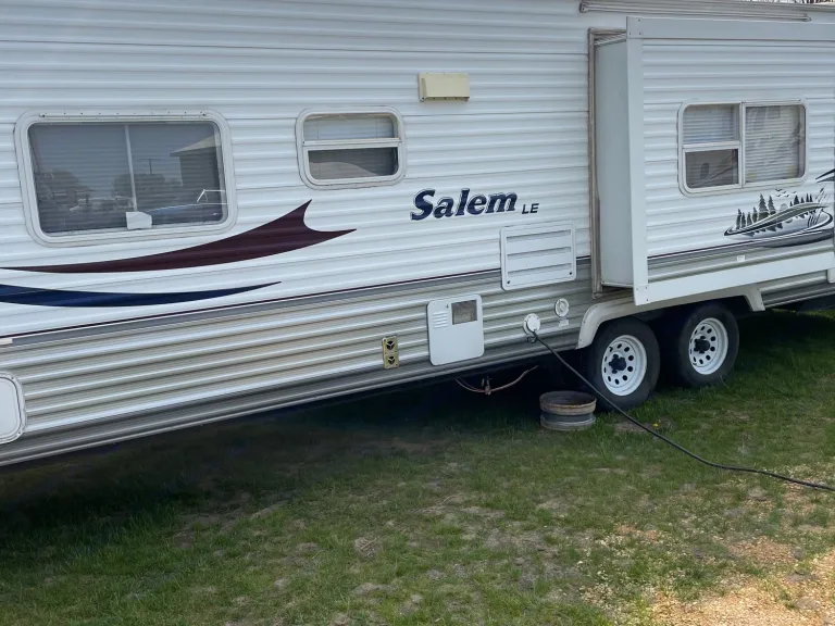2005 Salem bunkhouse 29ft. Sleeps 8. Has bedroom with queen bed up front. Double bunk on bottom and single bunk on top. Couch and table both fold down into beds. 1 slide out for couch. Heat, air, fridge, hot water, slide, everything works great. Perfect for larger family trips! Also includes small perks like outdoor radio and cd player, outdoor shower.What's includedBasic bed sheets, wash cloths and hand towels included. Basic kitchen and cooking supplies included, along with basic silverware.RecommendationsCastle rock lake! Or Mississippi River, they both have several great campgrounds.Other things to notePlease no smoking.