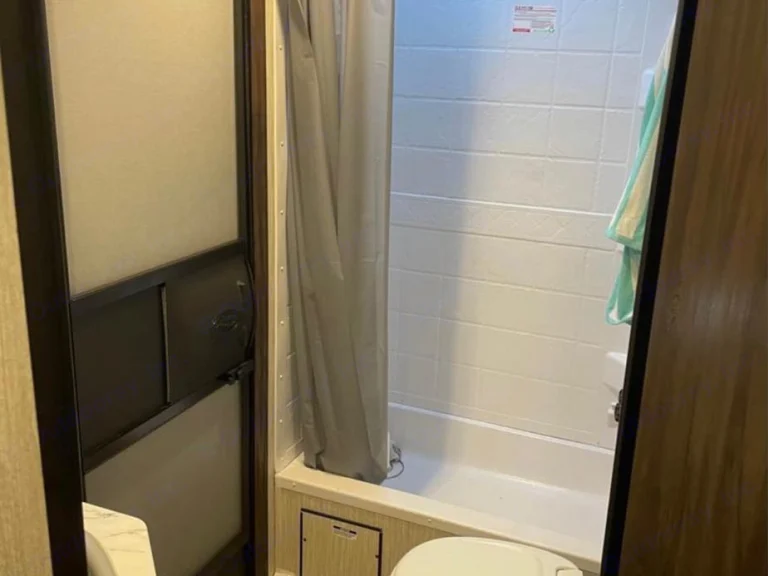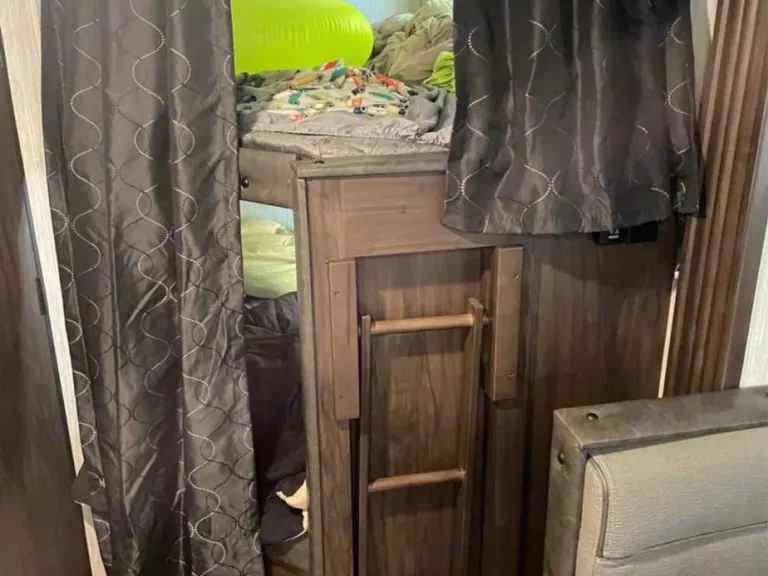 Up for rent is a practically new 2021 Forest River Cherokee Grey Wolf 26DBH. This is a bunkhouse trailer with double-wide bunks and a private main bedroom. It has a slide-out, awning, outside grill, fridge, and shower. Sway Bar hitch support included with price for safety!Entry: Enter the trailer on the extra tough steps with thick handrail. Entry opens to living and kitchen area. There’s also an entry directly at the back bathroom.Living Area: The slide out makes this mid-size trailer extra roomy. There is a small couch that easily opens to a bed. There is a U-Shape kitchen which is great for game nights! This also opens up into a bed. There is an electric fireplace with radio that has both outside and inside speaker functions.Kitchen: The kitchen has a large sink with cover for versatile use. There is a gas stove and oven as well as a microwave. The pantry is huge with regular size door. The kitchen has the basic necessities - plates, cups, bowls, silverware, and cooking pans.Main Bedroom: Main bedroom has a camper queen that has been upgraded to 4” thick mattress. It has a small closet on each side with mirror. Double doors makes entry easy on either side and provides privacy. USB hookupDouble Wide Bunks: These bunks are extra wide and could accommodate 2 people. Bottom bunk has usable windows. Curtains provide privacy. USB hookup.Bathroom: bathroom has 2 storage cabinets, sink, and toilet. It also has a stand up shower with skylight. It has a fan for airflow.Exterior: In the back there is a fold down storage rack. There is a dog leash holder. There is an awning and 2 outside showers. There is an outside shower, ice maker, and fridge. As well as plentiful storage. There are outside speakers.What's includedKitchen Basics - Cups, bowls, plates, silverware, pans for cooking, spicesRV Toilet PaperBasic cleaning itemsBasic linens - flat sheet and comforter per bunks and main bedOther things to noteNo pets without extra cleaning fee