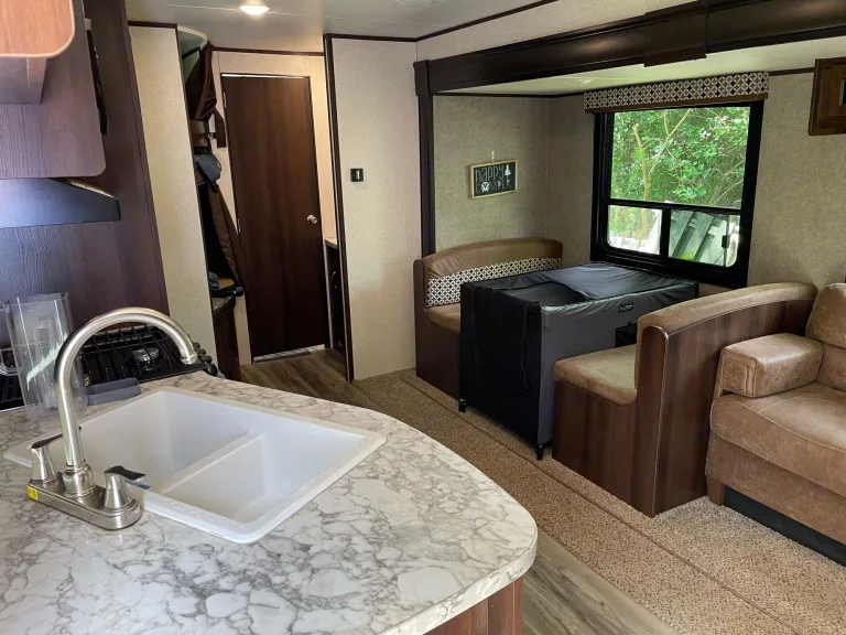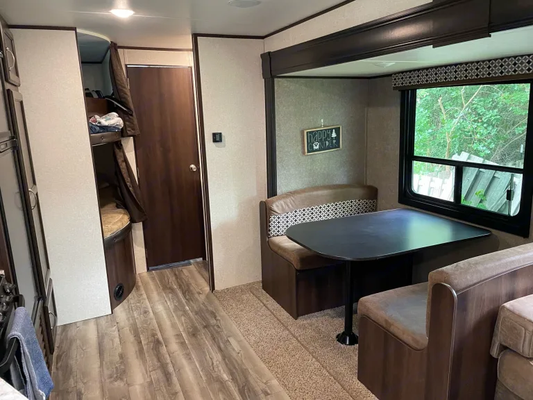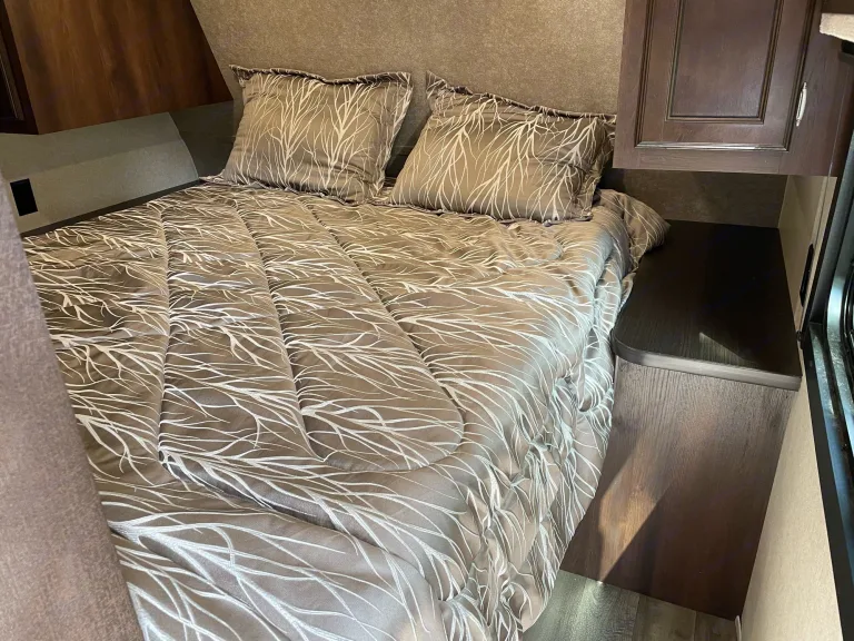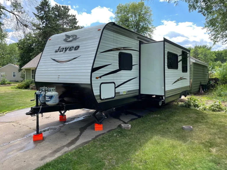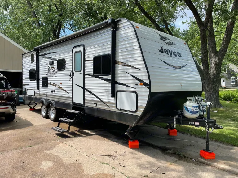 This Jayco Jayflight Bunkhouse is perfect if you are looking to get the family out and about for adventures! Towable by a half ton pickup, this Jayco is unique because it has tons of space and is still great to tow. It has a separate queen bedroom in the front, double bunk beds in the back, shower and toilet room, full slide out with dinette and couch, out door LED lit awning with speakers, and even an outdoor shower! This camper is super spacious inside so you won't be bumping elbows with everyone when you are getting ready in the morning, or getting cleaned up after your adventures outside. It is super easy to set up and will make sure you and your family have a fun getaway together. If you have a pack and play for little ones, it fits great in the dinette area as pictured! Pack and play is not included in rental.This travel trailer includes an upgraded leveling system that keeps the trailer from shaking and moving if anyone shifts in bed. It is super easy to use and keep everyone sleeping peacefully at night with no movement!What's includedFresh linens, towels, camping chairs, hoses and hook-ups, outdoor folding tables, pans and utensils, and silverware.RecommendationsWe recommend to find family friendly campgrounds with plenty of things to do for kiddos. Other things to noteWe highly recommend if you are staying anywhere for more than 3 nights, you try to get a camp site with sewer hookups. It tends to make life a little easier! 😃 If the black and gray tanks are not emptied prior to return, there will be a $100 fee applied upon return.