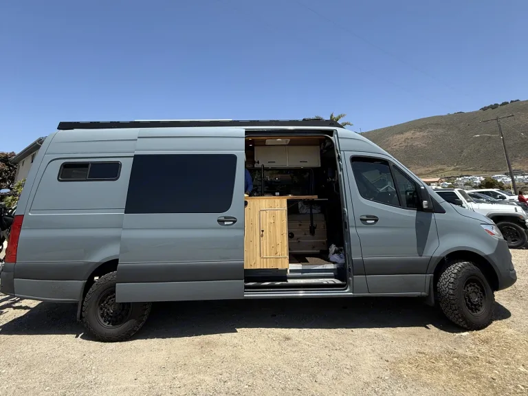 Our family just listed our custom-built Sprinter van on Outdoorsy, and we’re so excited to share the amazing experience with others! Meet Juniper, our 2022 Mercedes-Benz Sprinter 170WB camper van—designed with comfort, function, and freedom in mind. It’s the ultimate road trip experience on wheels, with ample living space, a fully equipped kitchen, and a cozy sleeping area that gives you everything you need to explore the open road in style. Whether you’re a couple or a solo traveler, Juniper is the perfect companion for adventure, relaxation, and unforgettable memories. (And yes, we’re pet friendly with approval, so you can bring your furry co-pilot along!)Inside, a comfortable queen-size bed with fresh linens, pillows, and blankets ensures a great night’s sleep no matter where you park. The fully equipped kitchen includes a built-in stove, sink, refrigerator, and all the cookware and dishes you need to prepare meals and coffee with ease—just like at home.Juniper is built for off-grid living, powered by solar panels and a high-capacity inverter that keeps your essentials charged and running smoothly. Outlets and USB ports throughout the van make it easy to power up your phone, camera, or laptop wherever you are. A freshwater tank feeds the sink, and a no-flush toilet provides simple and convenient sanitation without the hassle of plumbing or blackwater tanks.Climate control is handled with a roof ventilation fan and skylight for airflow and stargazing at night. For those warmer days, an optional portable AC unit is available as an add-on to keep things cool. The van also features Apple CarPlay and Bluetooth stereo for music and navigation. If you’re planning to work or stream while off-grid, you can add high-speed Starlink internet for reliable, unlimited connectivity wherever your travels take you.For safety and peace of mind, Juniper includes a first aid kit, fire extinguisher, CO₂ detector, and onboard GPS. With a powerful diesel engine, automatic transmission, and a maneuverable 22.5-foot frame, it’s as easy to drive as it is to relax in.Whether you’re chasing sunsets, exploring mountains, or just enjoying quiet nights under the stars, Juniper is the perfect travel companion to take you there in comfort and style.What's includedBedding: Queen bed with linens, pillows, blankets.