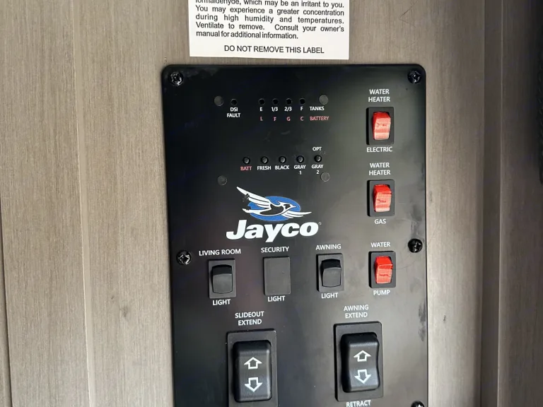 Jayco is a brand new 2022 travel trailer with AC unit. Featuring a queen bed including bedding, pillows and extra covers. Folding couch to sleep 2 with bedding, pillows, and extra covers. TV with satellite or local wifi connection if available at camp site. Kitchen contains a 3 burner stove, microwave, sink, utensils, plates, pots, coffee pot, toaster, sandwich griddle, pantry storage, full rv fridge and freezer. Bathroom has shower, sink, toilet, towels. Interior fire extinguisher included and space heater included. Exterior has upgraded heavy duty lighted steps, awning with led lights, outdoor table, built in griddle with gas hook up, 2 full propane tanks, outdoor mini fridge, 4 folding chairs, outdoor rug, extension cord, potable water hose, 30 foot sewer hoses for full hook up. Manual leveling jacks, electric tongue jack, roof rack with ladder access, spare tire. What's includedFresh linens, pillow, pillowcases, extra covers, towels, indoor table, plates, forks, cups, pots, pans, mixing bowls, strainer, grater, scissors, first aid kit, eating and cooking utensils, coffee maker, toaster, outdoor mat, outdoor table, 4 folding chairs, 30 amp 120 volt electric hook up cord, 2 15 foot sewer hoses for hook up, potable water hose. LED space heater. Storage for clothing and shoes. Hooks for coats and towels. 4 marshmallow roasting sticks, smores kit, dish detergent, clorox wipes, kitchen rags, sponge, and dish towels, trash bags, outdoor trash can. RecommendationsDon't use gas heater. Thank you for renting our "Bamper" We hope you enjoyed your stay.Other things to noteAll drug use prohibited to protect all renters and owners, no pets of any kind, no more than 4 overnight guests, clean up any messes, leave all towels in shower pan and leave all bed linens on bed at end of stay.