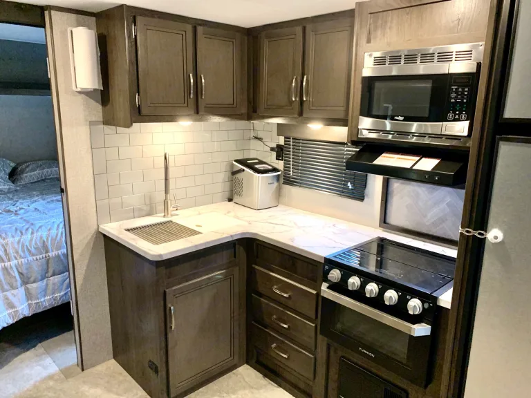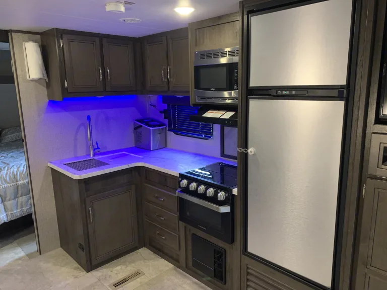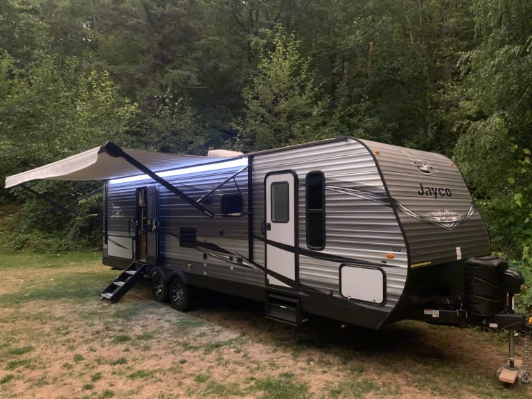 Ultimate Glamping Adventure Trailer – Sleeps 8!Available Now – Let the Good Times Roll!It’s that time of year again – when the sun’s out, the trails are calling, and adventure is just around the corner! Whether you’re planning a weekend escape or a full-on family getaway, our fully-loaded camper trailer is your ticket to comfort, style, and wild outdoor fun!Why Rough It When You Can Glamp in style?This isn’t just a trailer – it’s your home on wheels. With room to sleep 8 comfortably, everyone gets their space to recharge. And when it’s time to freshen up, enjoy a tall walk-in shower with unlimited hot water thanks to the tankless water heater. Long, steamy showers in the woods? Yes, please.Cook In or Out – You Choose!Whip up a gourmet meal in the indoor kitchen or fire up the outdoor setup for grilling under the stars. Either way, the large fridge & freezer will keep your drinks cold and your food fresh for the whole trip.Private Master Suite – Just for YouWhen it’s time to wind down, retreat to your queen-size bed in the separate master suite with its own door – for the privacy you deserve.Entertainment Vibes On PointGet the party started (or movie night rolling) with the upgraded sound system, including a 12” subwoofer and full surround sound. Crank up the campfire jams or snuggle in with your favorite flick – this trailer’s got serious AV game.Set the MoodCustom accent lighting lets you choose your vibe – whether you’re feeling chill blues, romantic reds, or party-mode purples.All the Bells & Whistles