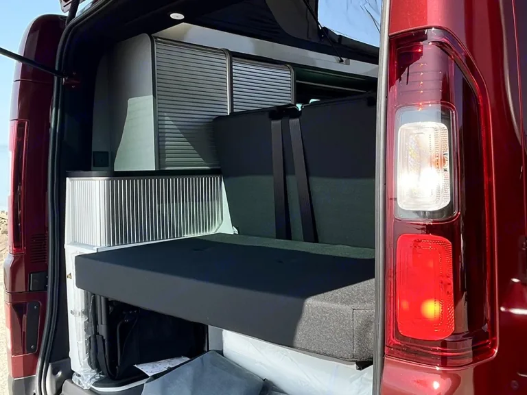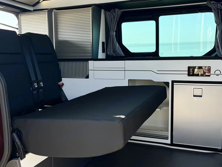 Les couchages sont constitués d’un lit double dans le toit relevable et d’une banquette convertible pour 3 personnes dans l’habitacle du véhicule.