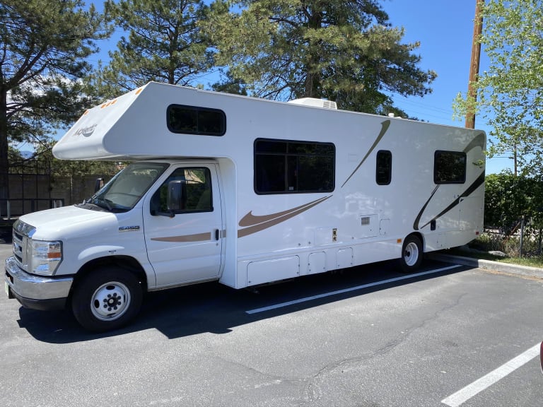 This larger 30 foot motor home features a full walk around queen bed in the back, as well as a couch that folds into an additional sleeping area. This unit is perfect for larger families, or for those looking to have some additional space. Willing to accommodate one-way-trips, RV drop off, and RV pick up for additional fees.