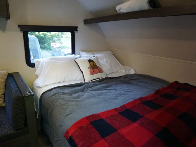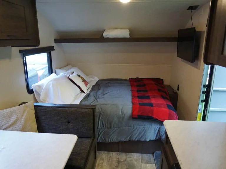 A perfect sized camper for a family or couple to have a cozy getaway. It can sleep 5 adults comfortably or 6 people if you have smaller children. The camper is light, but does require a break control to be towed.Pick up and drop off times are determined at time of booking. We are flexible with those times depending on surrounding bookings. *Note* There is a minimum 5 night rental for bookings requiring delivery/pickup.The camper does require 15/30 amp to run things such as refrigerator/ac. Without this the battery will only run lights for a short amount of time. It will either need to be plugged into a truck to recharge battery or a generator can be used. We do not have one available with camper (we also don’t highly suggest this option as they are very loud for camping/surrounding campers.Beds will only come with bottom sheets, you will have to bring your own blankets/pillows/sleeping bags.This is a non-smoking trailer. Smoking in the trailer will void your security deposit.What's includedPots