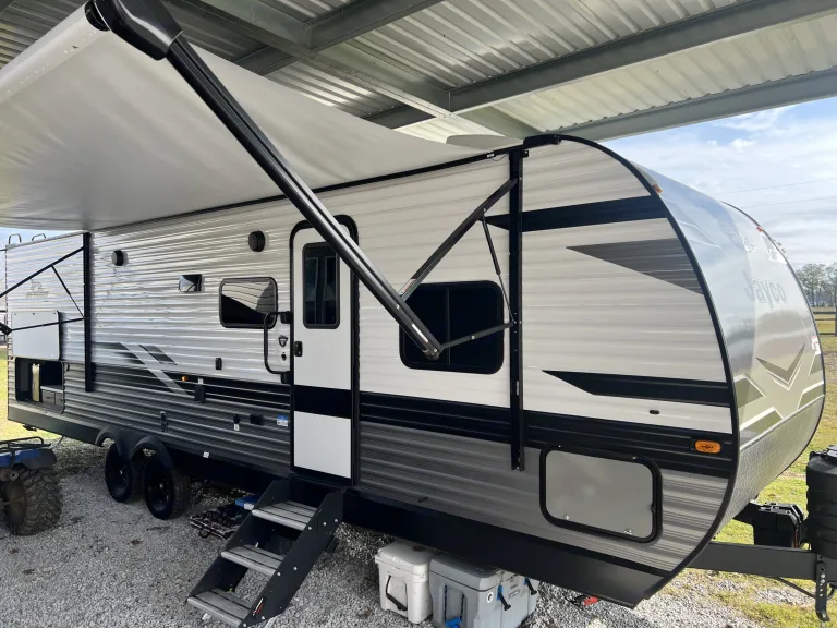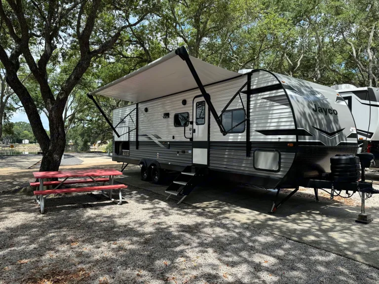 Our Jayco has multiple amenities to accommodate your stay at any Camping spot you desire. (Instant hot water, outdoors stereo system, 4 corner stabilizer system, outdoor kitchen and more!) 2 bunks, 1 full bed and a fold out bed. Along with 2 comfortable recliners for indoor use! Enjoy our worry-less rental!Other things to noteNo smoking