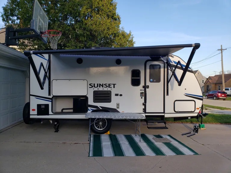 Looking for a turn-key camping experience? We are not what you would call hard core campers... we like the home away from home. After renting a few sardine cans, we wanted more and hope that you do too!This camper is packed with all the creature comforts you could want including kitchen utensils, fire pit fun, coffee maker, games, cleaning supplies, towels, entertainment system, and cleaning supplies. (take a look at the pictures!) Just pack up some clothes, gets some food, and grab some bedding (we would provide it... but gross... we don't want you to have to sleep in our sheets), and don't forget the beer (or lemonade if beer isn't your thing)Our brand new camper is light enough to be pulled by an SUV (needs to be able to pull 5000#s and have a break controller) and the dinette slide out makes it feel like a spacious, welcoming room (you're not a sardine!). A camper can be daunting to pull so we provide a stabilization hitch.If your new to camping don't worry, we got you covered. We have guides with pictures that will walk you through the set up and break down. We will also give you a tour and show you all the details to make sure you get set up and start your relaxing vacation.We take your health and comfort seriously. We clean and sanitize after each use, nobody likes a dirty camper! What's includedKitchenware, Plates, Bowls, Utensils, Cleaning Supplies, Toilet Paper, Towels, Foam Padding for Beds, 6' Table, Table Cloth, Power Strip, Extension Cord, Marshmallow Roasters, Puggie Pie Makers, Bug Zapper, Mini Fan, Roku (need your own WIFI and you can log into you're streaming services, Games, Tarp, Fire Pit Grill, Hot Gloves and everything that you see in the pictures. RecommendationsDo whatever you feel like! It's CAMPING!!!Other things to noteWe don't allow pets... we have a bunch of them and love them... but they are furry and they break stuff. We don't even take them.