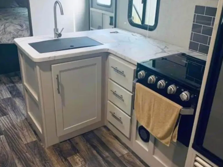 Whip up meals at camp with ease—includes a stove, oven, microwave, refrigerator, and plenty of cabinet space for all your snacks and supplies.Full Bathroom
