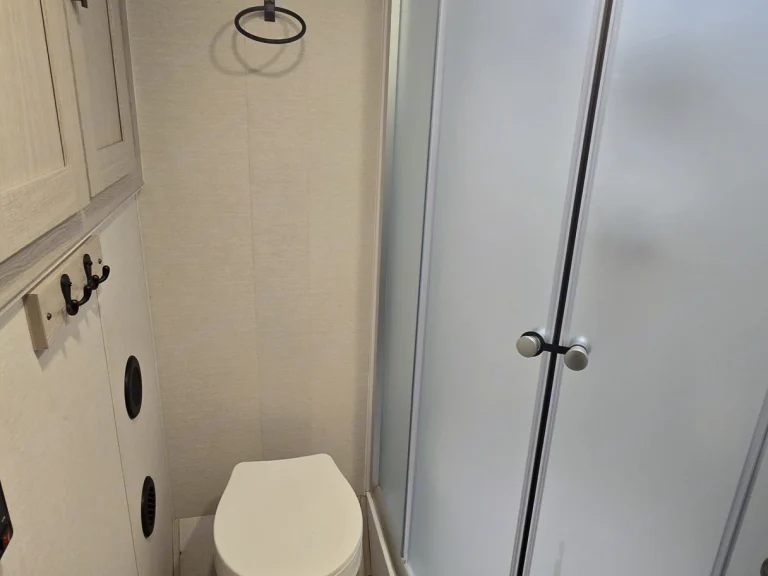 - Refrigerator: Can run on battery bank which is charged with the solar panel on top of the RV