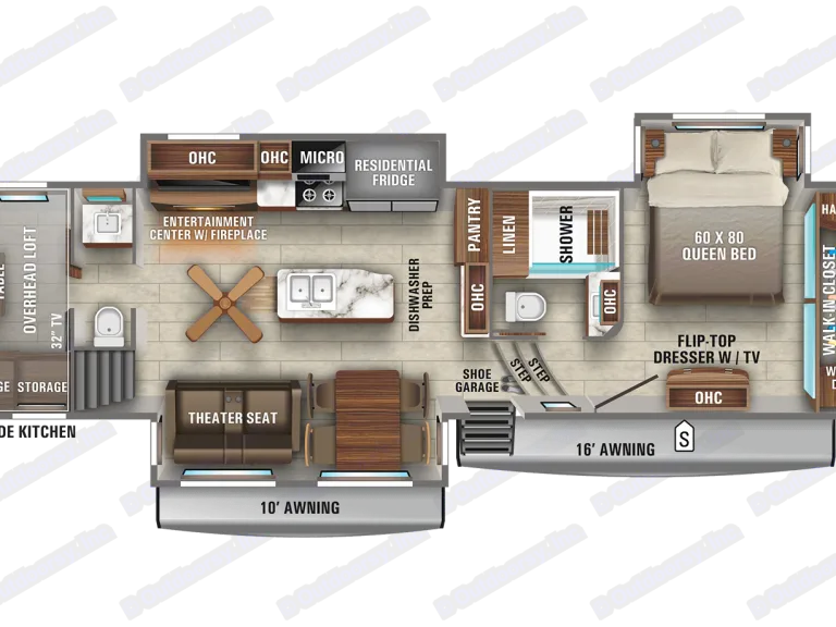 • Loft with 2 twin beds, storage for all your belonings, and prepped for a tv